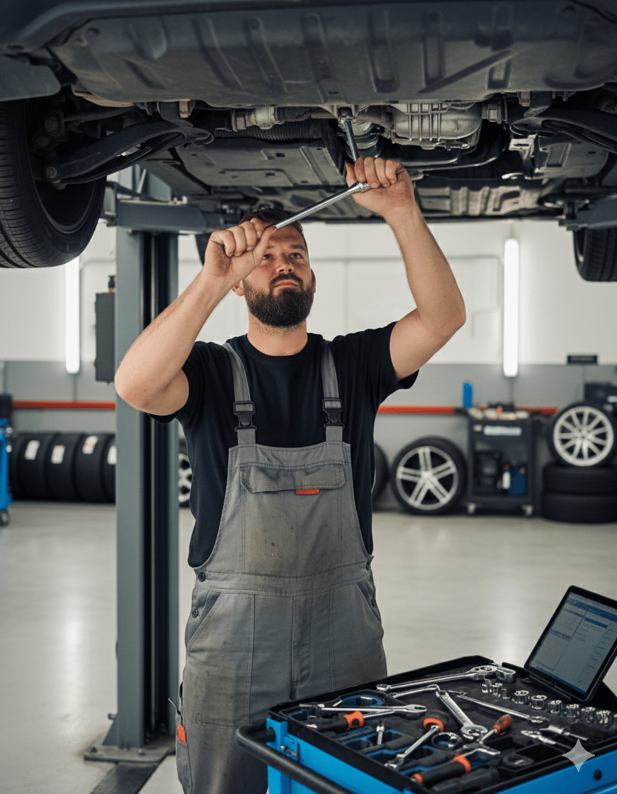Vi sørger for, at bremser, dæk og væsker er vinterklare, så du kan køre trygt selv på glatte veje.
