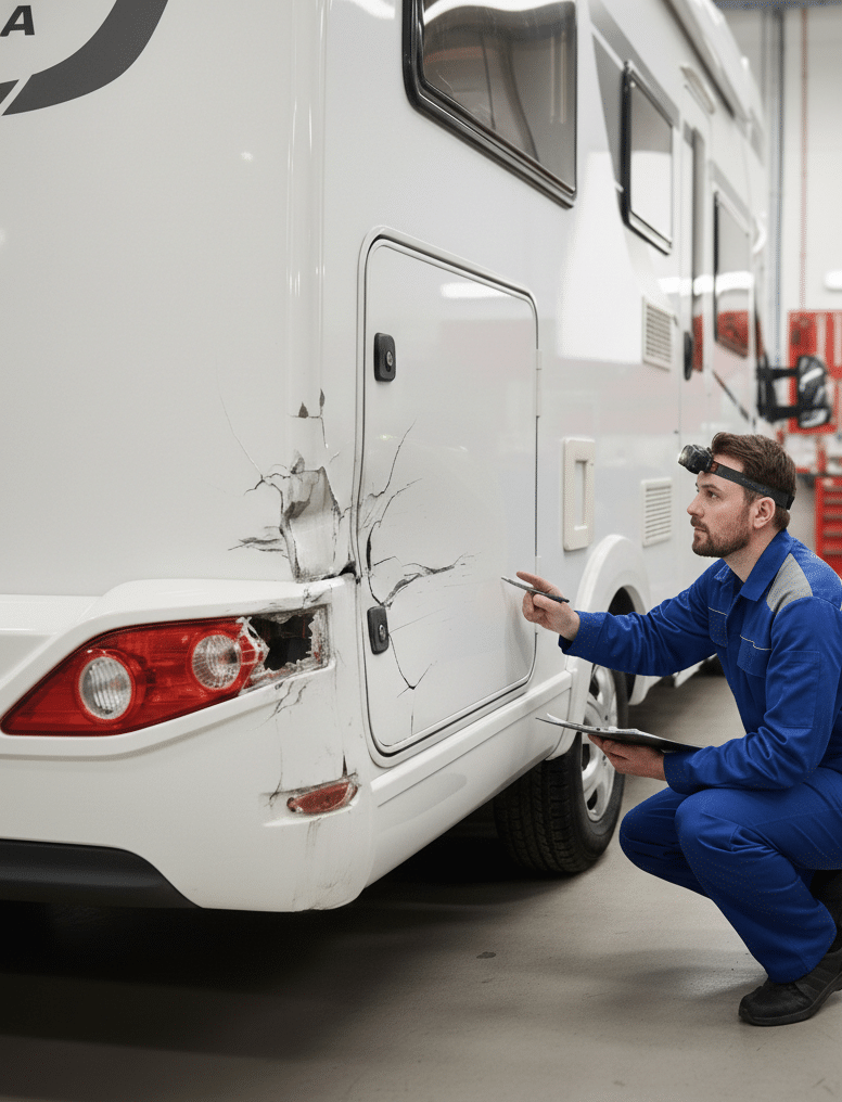 Vi håndterer skader gennem forsikringen, så du hurtigt kan få autocamperen tilbage på vejen.